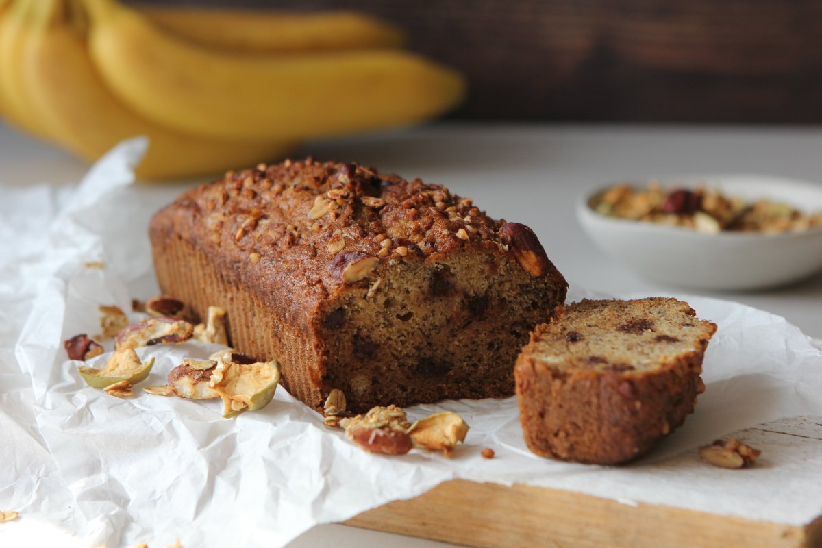 Mélanger le beurre, les oeufs et le sucre jusqu'à ce que l'ensemble mousse bien.Après, ajouter la farine mélangé avec le bicarbonate, le poudre à lever et le sel. Ajoutez les 30 g de chips de chocolat et les 50 g du granola choco-banane, en les répartissant uniformément sur le dessus. Faites cuire pendant 40 minutes à 180 degrés dans un moule beurré et fariné.