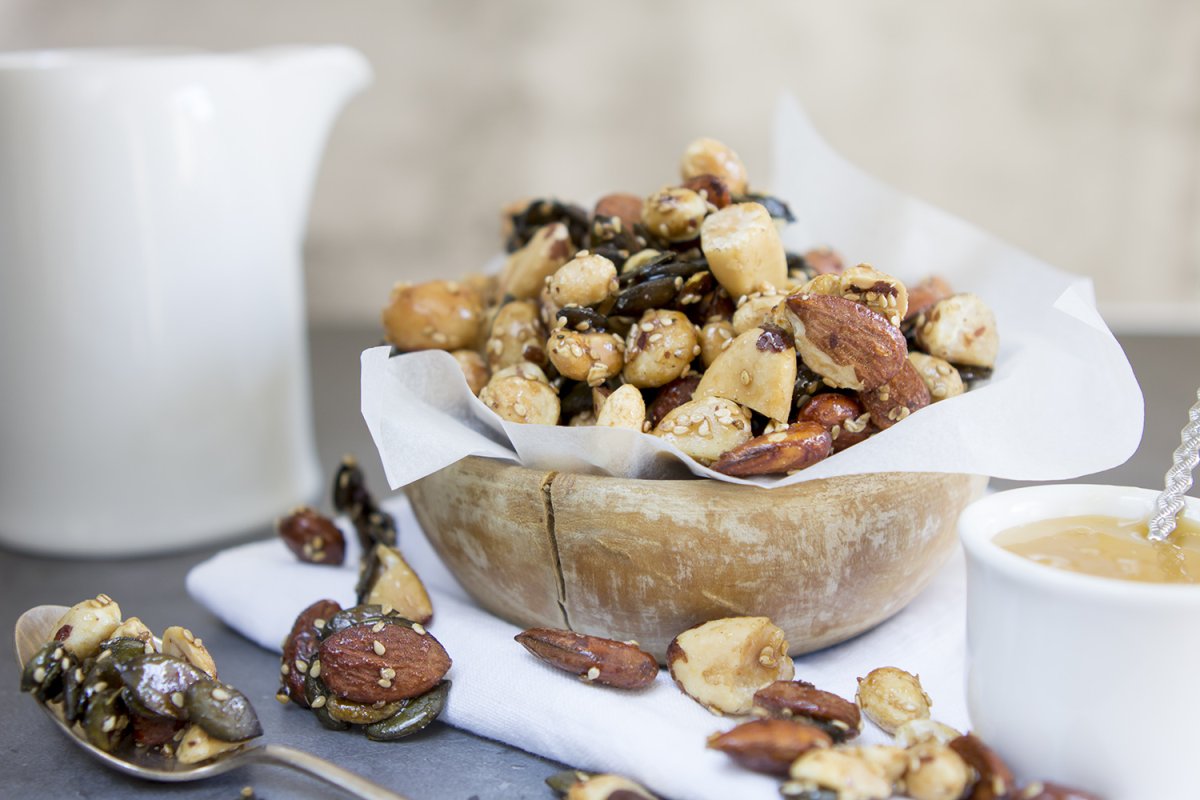 Le préféré des étudiants et les sportifs. Noix mélangées grillées au four et sucré délicatement avec du sirop d’érable bio. Parfaites pour grignoter.